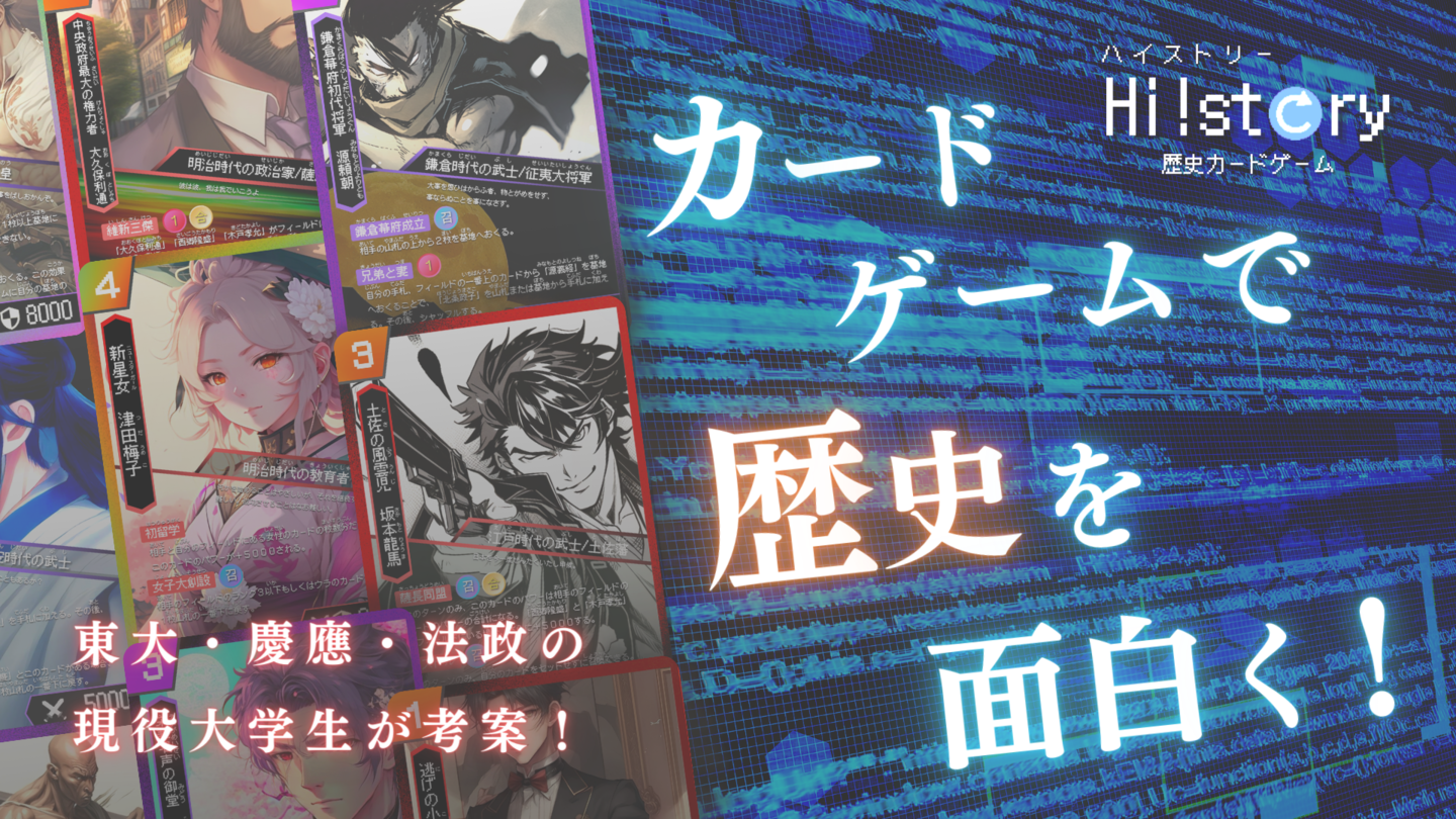 歴史を楽しく主体的に学べる、新感覚対戦型歴史カードゲームHi!story(ハイストリー)新発売。暗記教科と言われている歴史を思考する教科へと変えるべく、楽しみ興味を持ちながら学べる製品です。