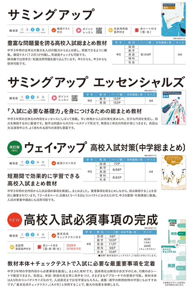中学生用教材:高校入試対策・高校準備