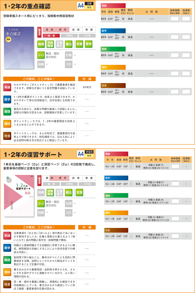 1・2年の復習サポート