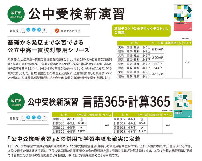 公中受検新演習 言語365・計算365