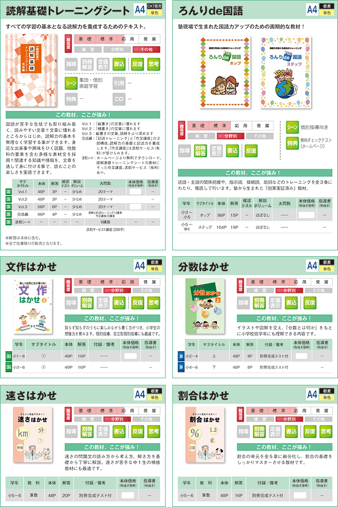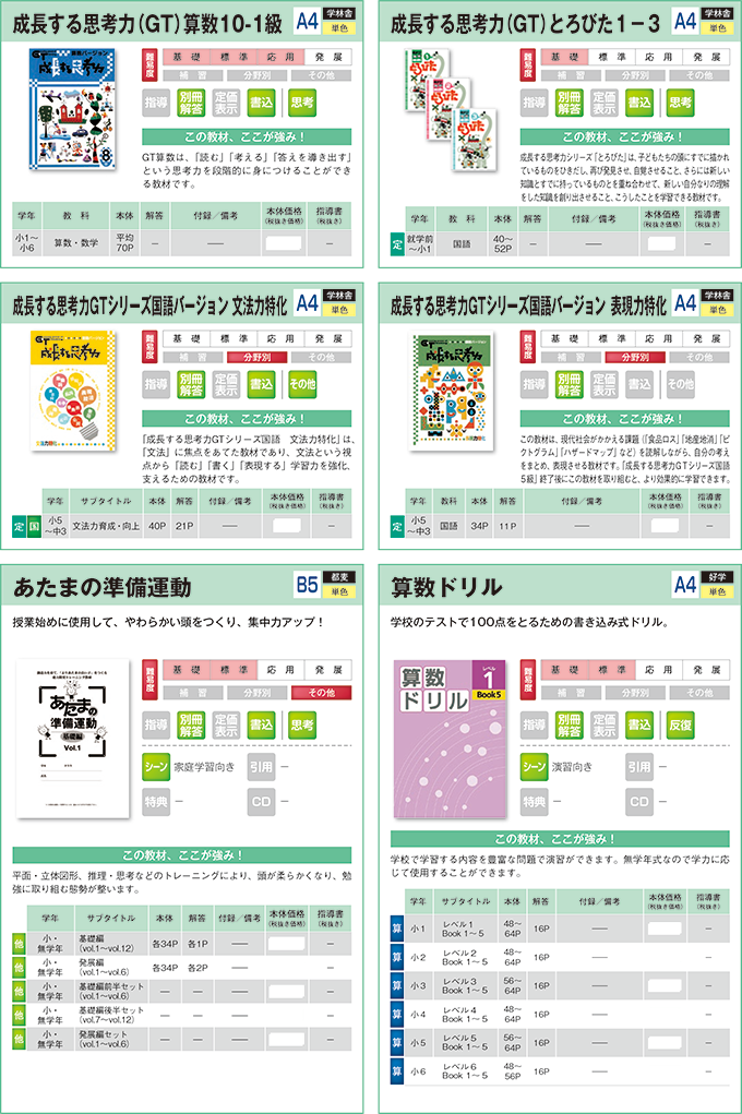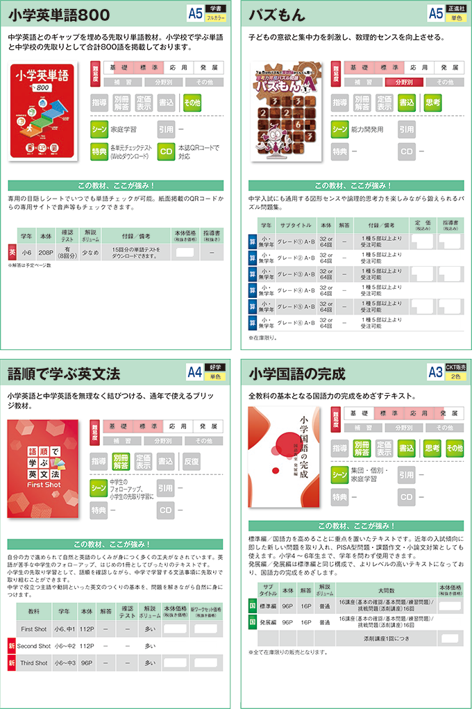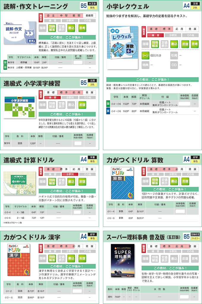 小学生用教材:分野別・まとめ